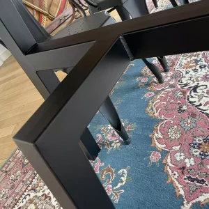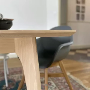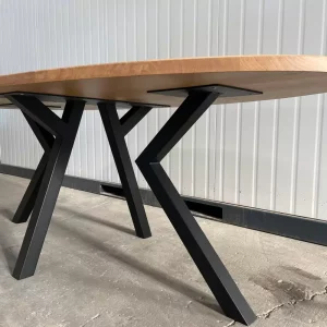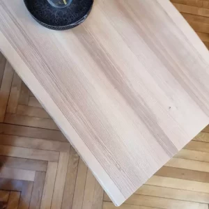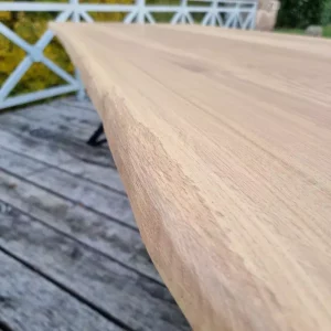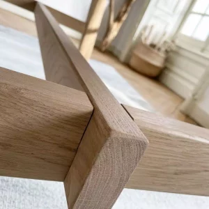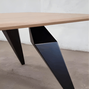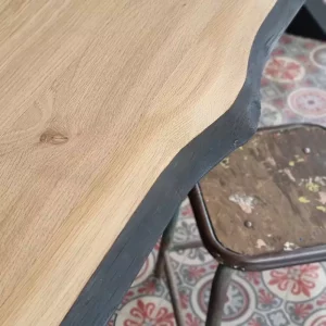 Nos plateaux en chêne, frêne ou hêtre massif sont travaillés avec soin : bords chanfreinés, live-edge ou biseautés, toujours avec des finitions haut de gamme. Les piètements, en bois ou en acier thermolaqué, associent robustesse et élégance.