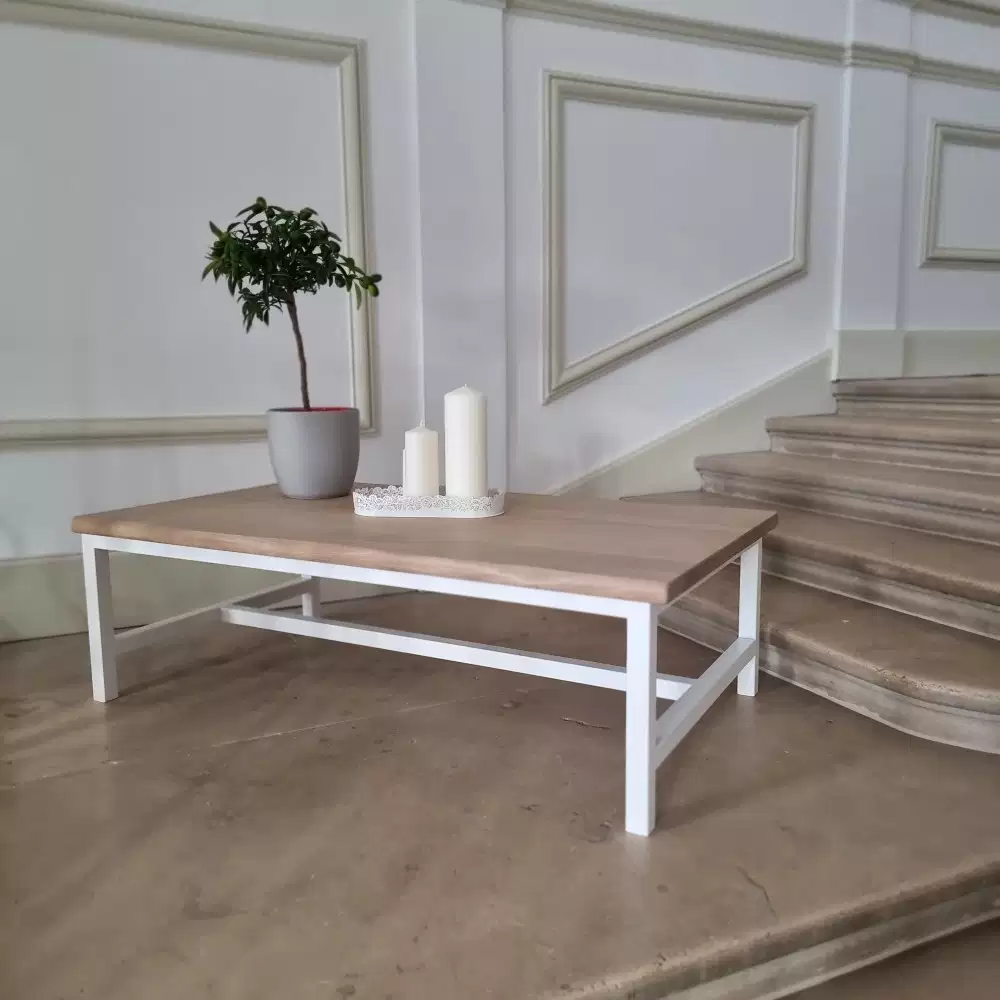 Viviane incarne l’élégance simple et authentique. Avec son plateau en chêne massif aux bords naturels et son piètement en acier thermolaqué blanc, cette table basse allie chaleur, modernité et savoir-faire français.