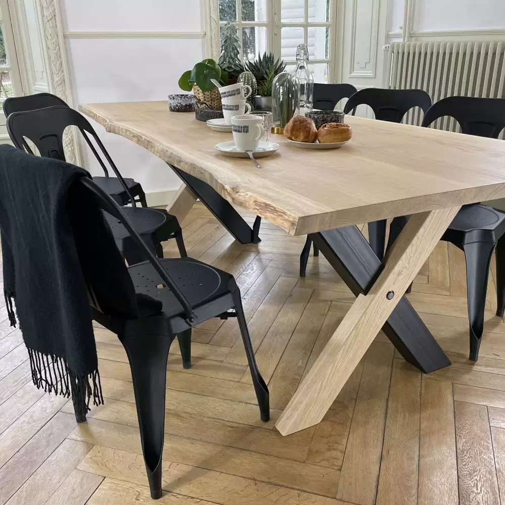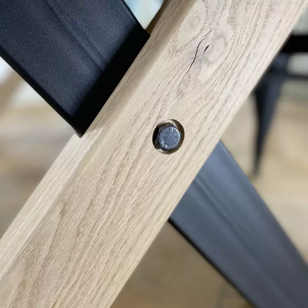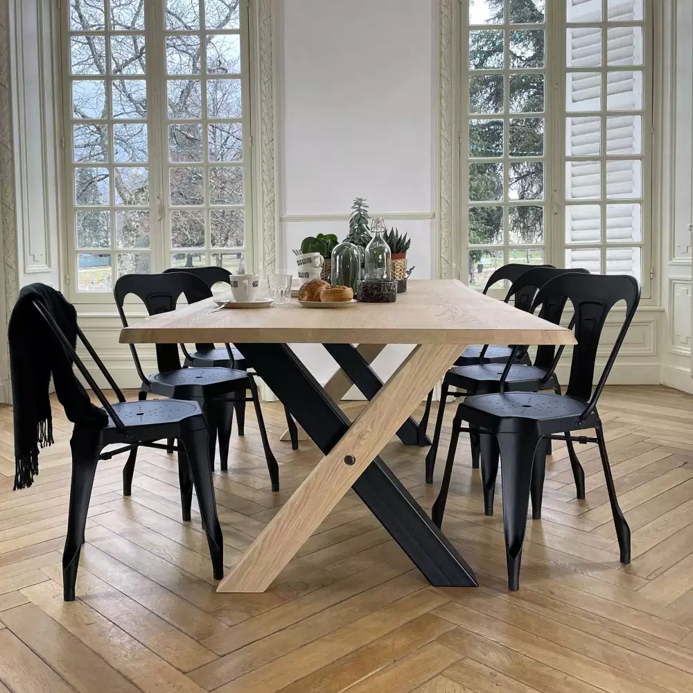 Avec MI-BOIS, Brût réinterprète le piètement croix en intégrant du bois massif au cœur de la structure métallique. Le résultat : une table originale, stable et élégante, qui s’impose comme une signature unique dans votre intérieur.