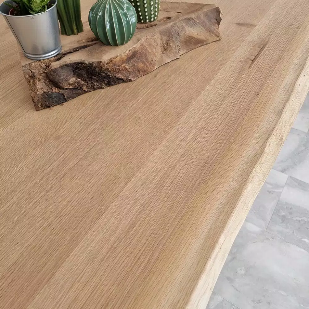 Chaque plateau révèle le veinage noble du chêne, travaillé par nos ébénistes pour préserver ses bords naturels et son caractère unique.